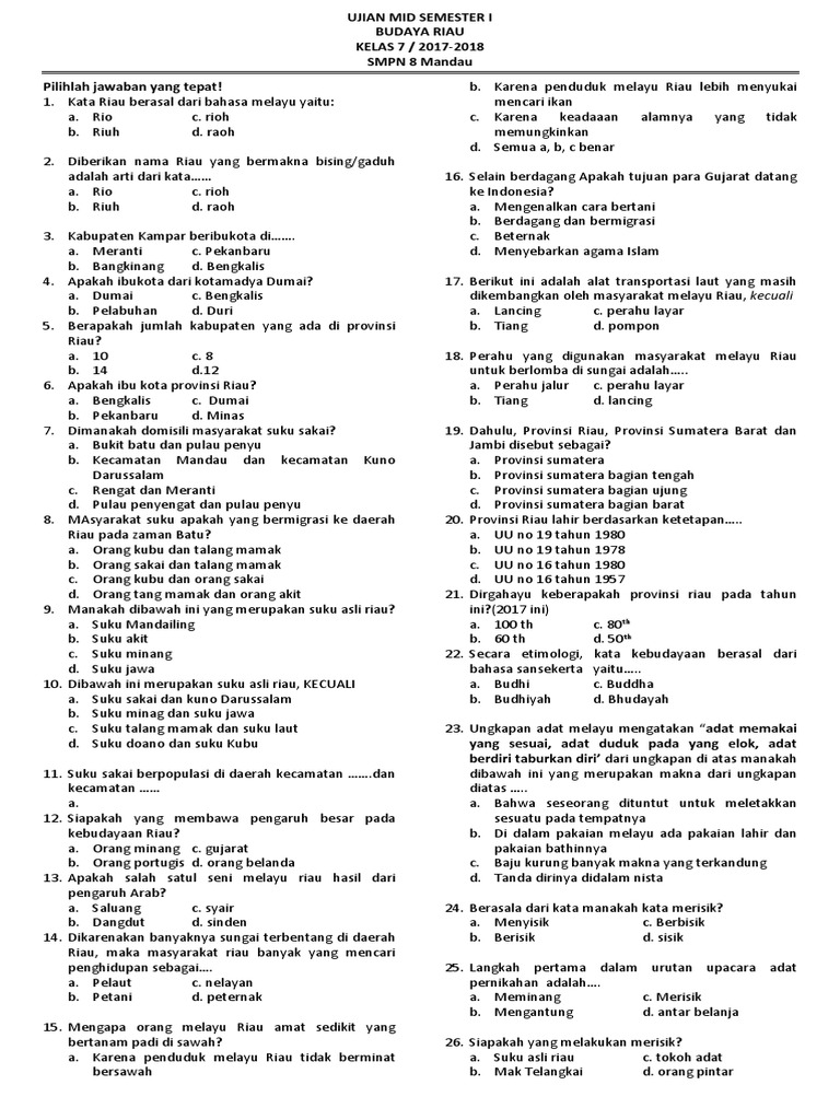 / Soal Bmr Kelas 3 Sd Semester 2 - Inspirasi Budaya Melayu Riau Tingkat Sd Sederajat : Maka soal saya susun untuk memberi gambaran soal yang akan anda ujikan.
